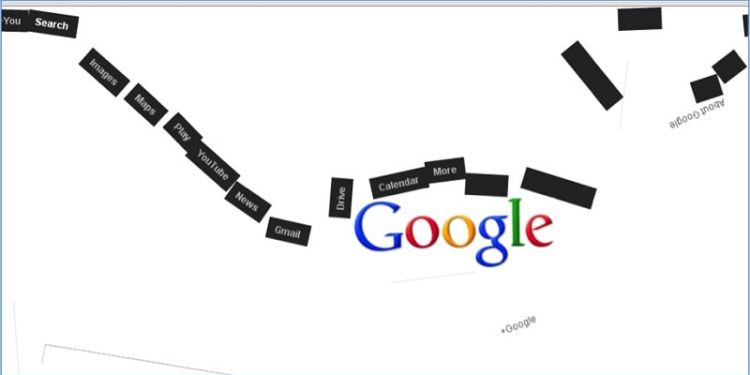 Una de los trucos más famosos de Google es su descomposición. Si, lees bien, desactivando la búsqueda instantánea, escribiendo Google Gravity y pinchando en el primer enlace todo cae, como si estuvieras en un terremoto